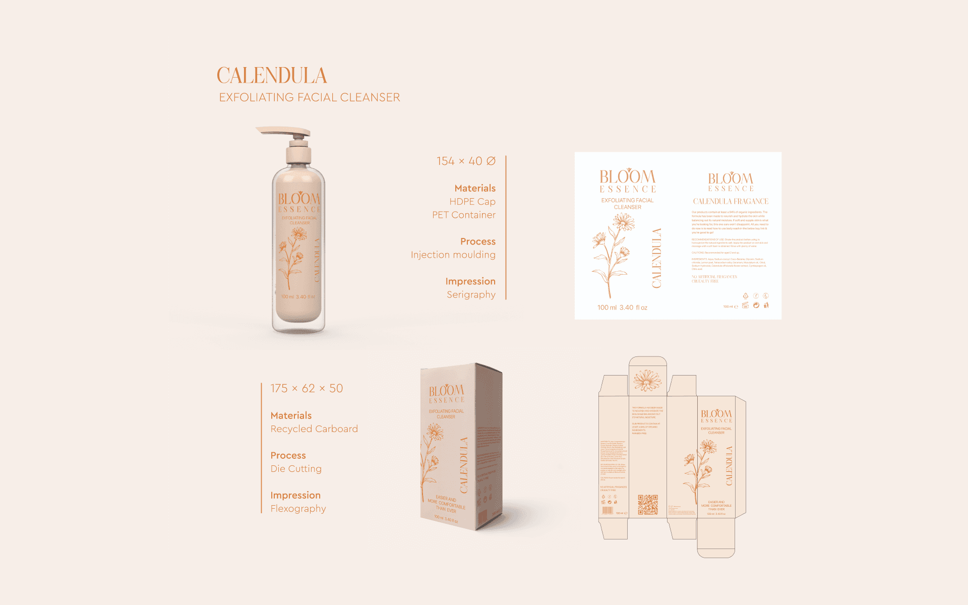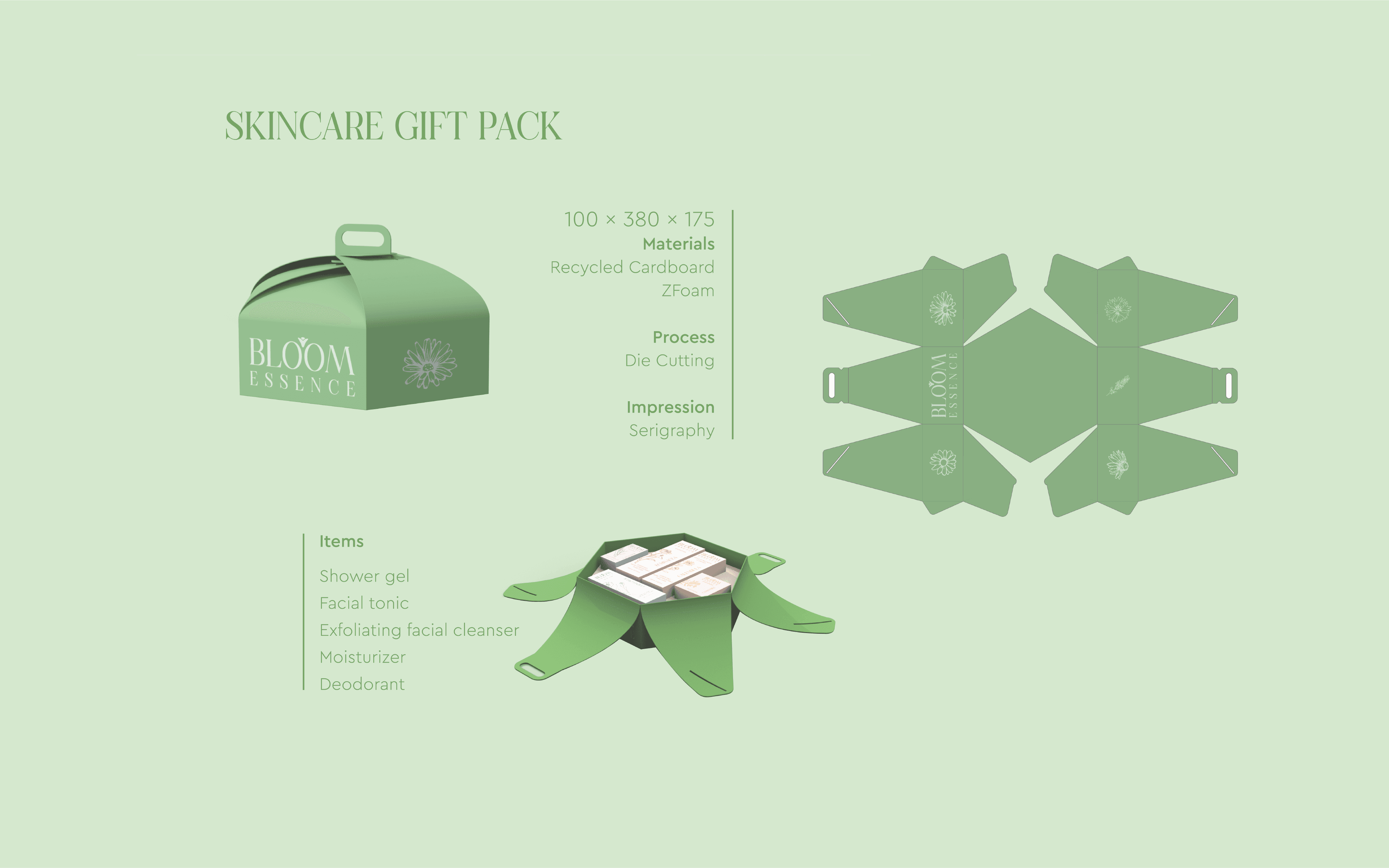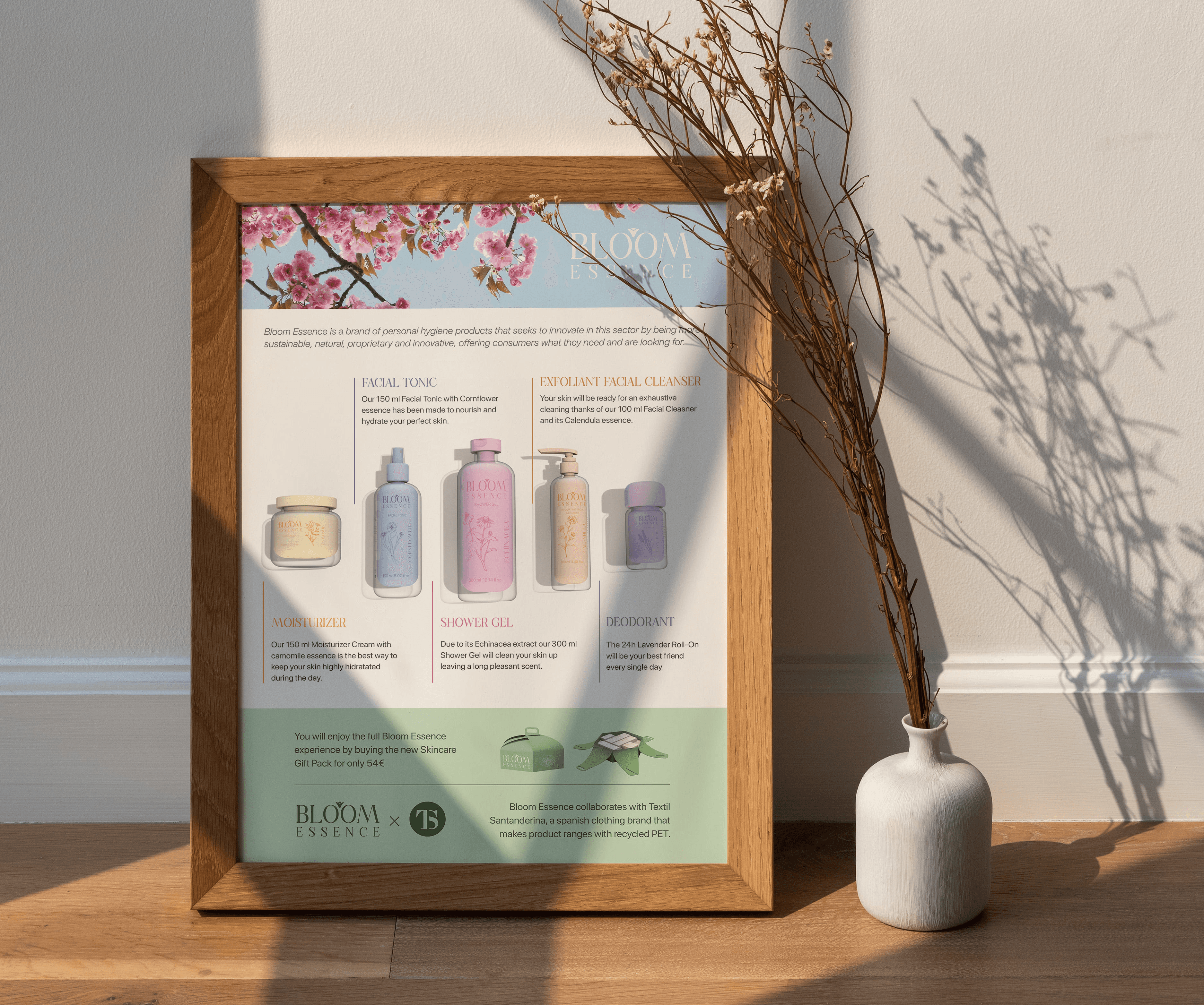 Bloom Essence is a personal hygiene brand that focuses on sustainability and innovation. This project involved a complete redesign of the brand's visual identity, including logo, typography, and color palette. The packaging design emphasizes elegance, modernity, and exclusivity, offering a unique experience to consumers. Bloom Essence strives to revolutionize the cosmetics and hygiene sector by offering products that are both effective and environmentally friendly.