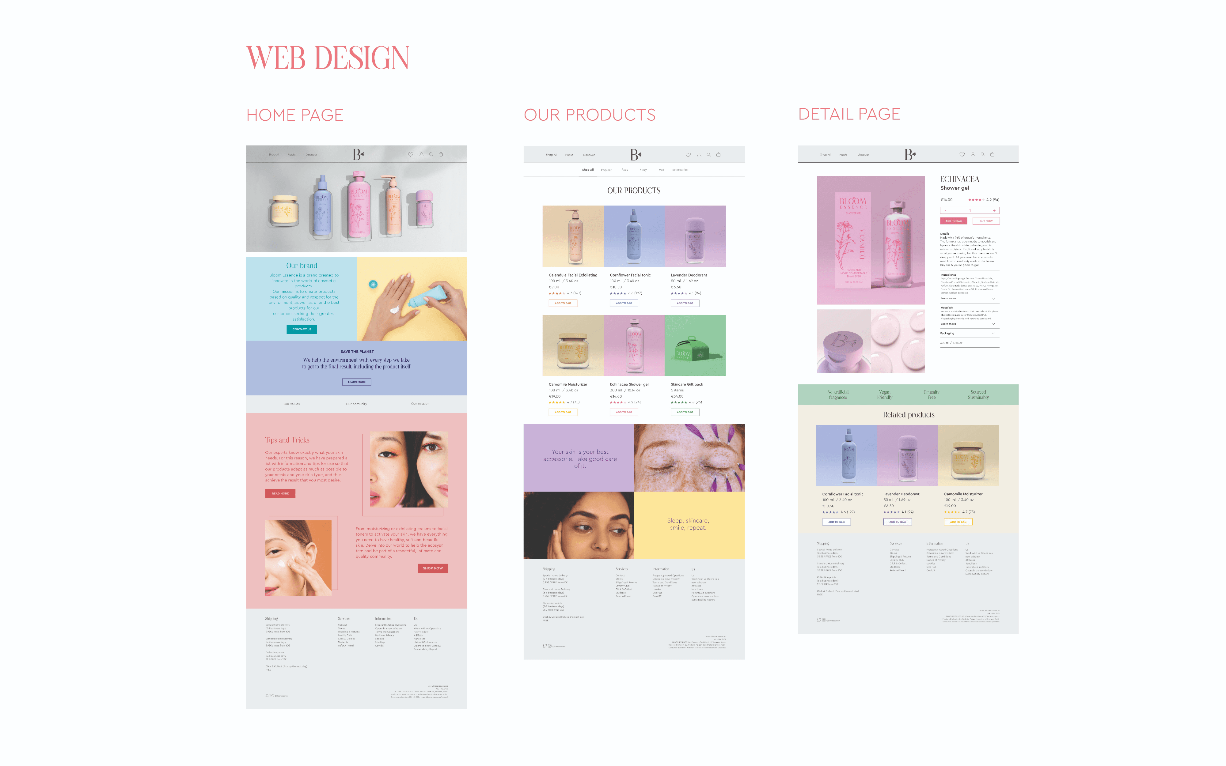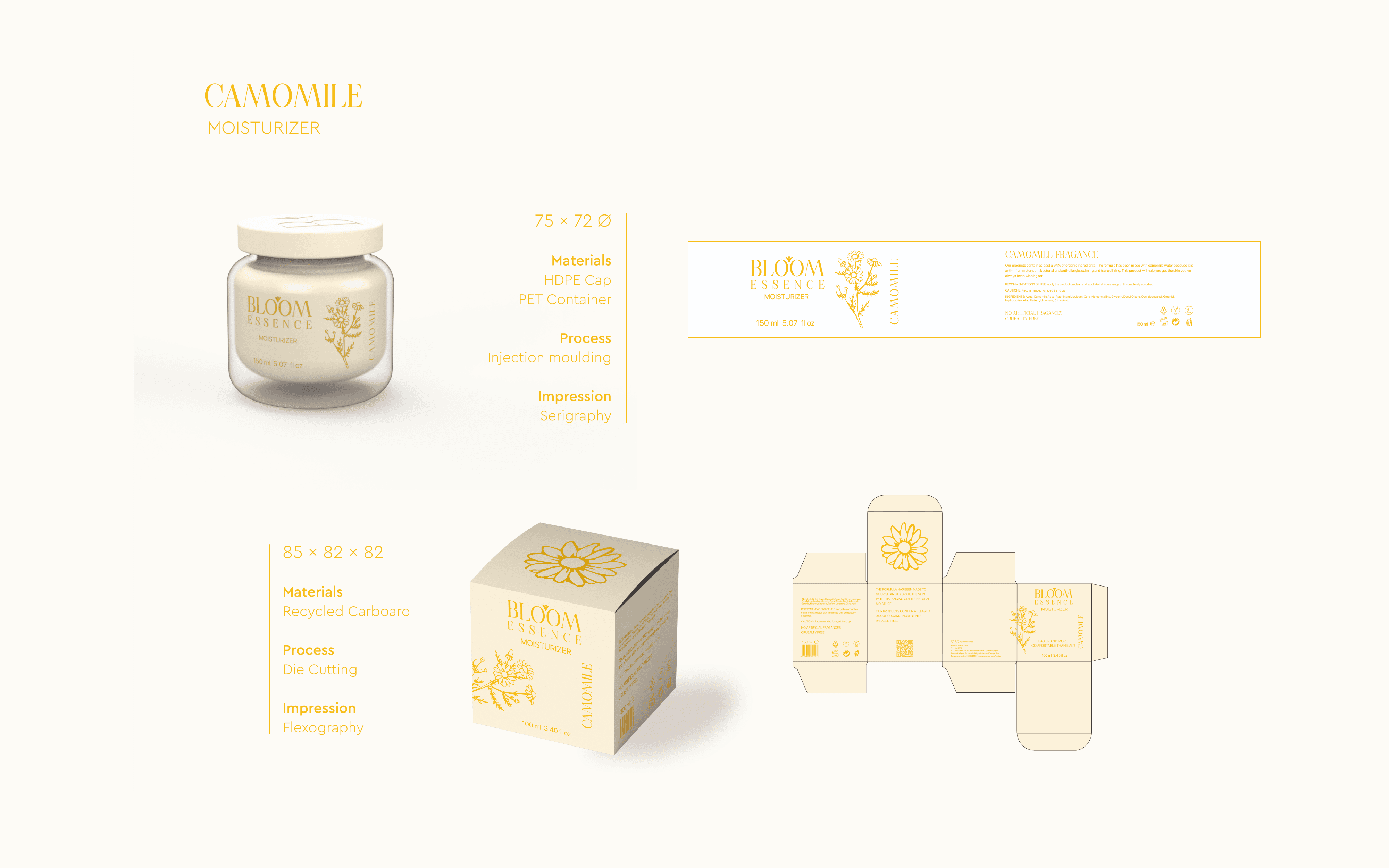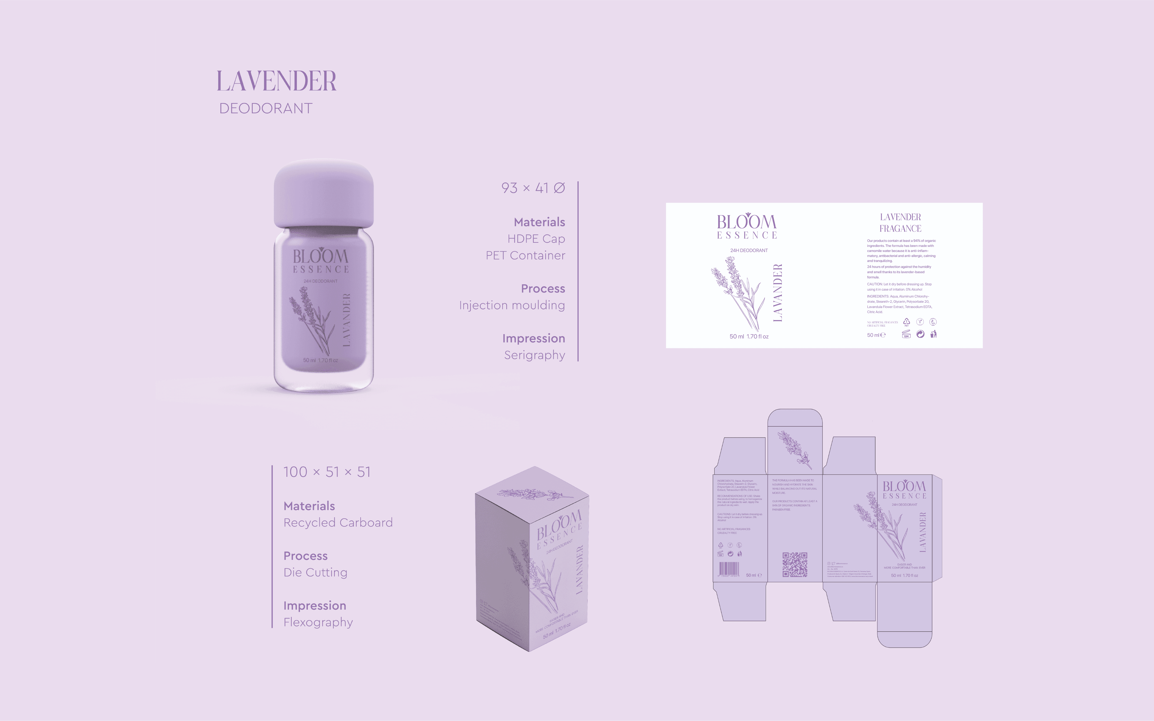 Bloom Essence is a personal hygiene brand that focuses on sustainability and innovation. This project involved a complete redesign of the brand's visual identity, including logo, typography, and color palette. The packaging design emphasizes elegance, modernity, and exclusivity, offering a unique experience to consumers. Bloom Essence strives to revolutionize the cosmetics and hygiene sector by offering products that are both effective and environmentally friendly.